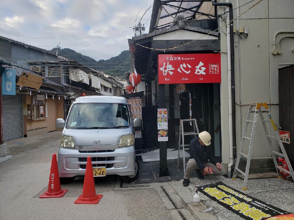 宮島の快心友様の看板とタペストリーを作製致しました。