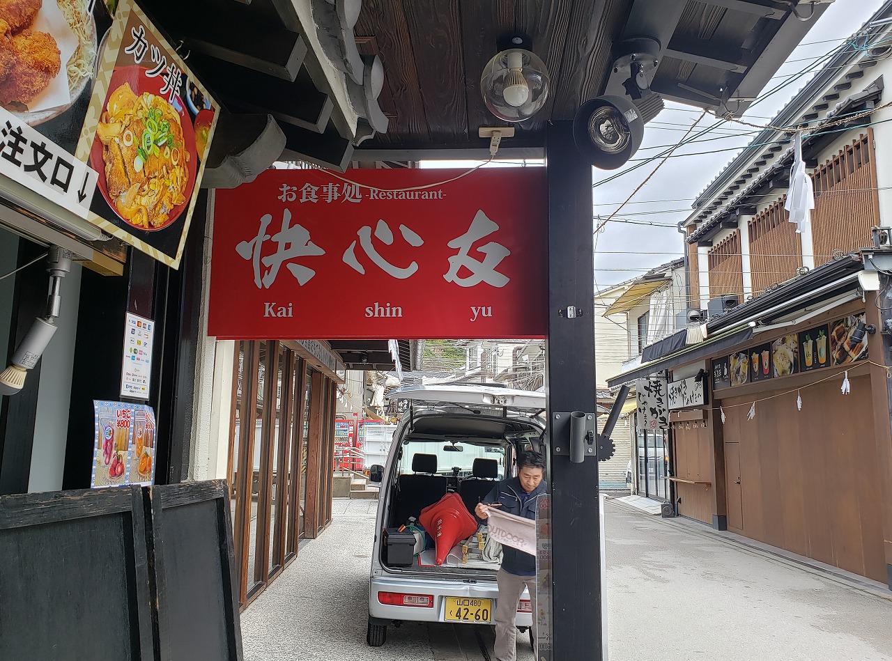 宮島の快心友様の看板とタペストリーを作製致しました。